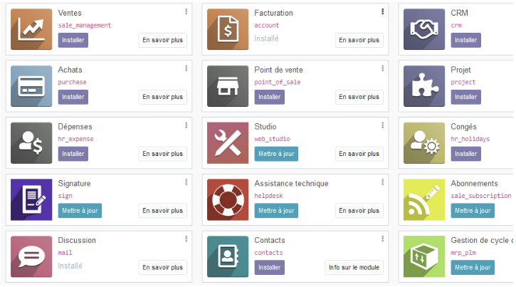 Afin de configurer la TVA vous devez d'abord vous assurer d'avoir installé l'application facturation.